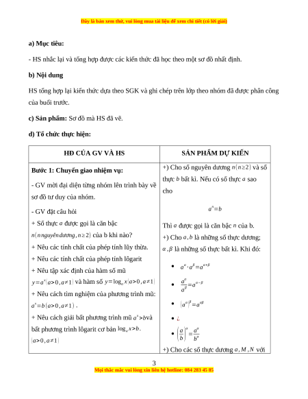 1. Kiến thức, kĩ năng: Học sinh ôn tập và củng cố về - Phép tính lũy thừa. - Phép tình lôgarit.