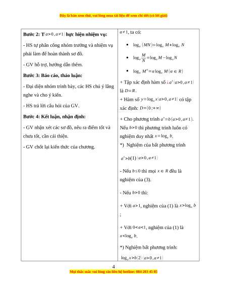 Bước 2: T(a>0 ,a ≠1) hực hiện nhiệm vụ: a ≠ 1, ta có: