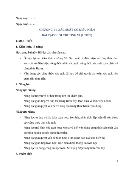 CHƯƠNG VI. XÁC SUẤT CÓ ĐIỀU KIỆN