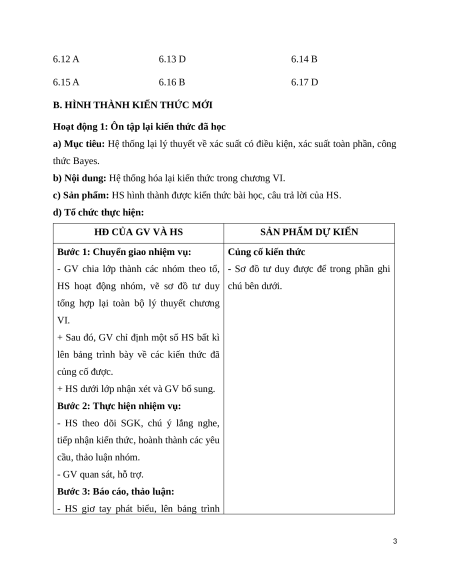 a) Mục tiêu: Hệ thống lại lý thuyết về xác suất có điều kiện, xác suất toàn phần, công thức Bayes.