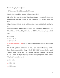- Vận dụng các công thức xác suất đã học để giải quyết bài toán xác suất liên quan đến thực tiễn. 2. Năng lực
