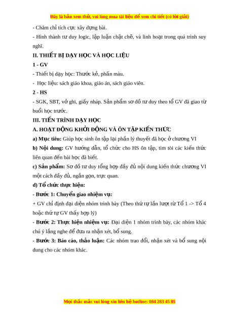 Ộ G VÀ ÔN TẬP KI N Ế TH C Ứ a) M c t ụ iêu: Giúp h c s ọ inh ôn t p l ậ i ạ ph n l ầ ý thuy t ế đã h c ọ ch ở ư ng ơ VI b) N i ộ dung: GV hư ng ớ d n, ẫ tổ ch c ứ cho HS ôn t p, ậ tìm tòi các ki n ế th c ứ liên quan đ n bài ế h c ọ đã bi t ế . c) S n ả ph m