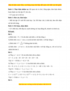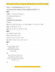 d) Biểu thức −2tm+8t2+t−1là đa thức một biến t với bậc bằng m, với m là số tự nhiên lớn hơn 2. Bài 2.