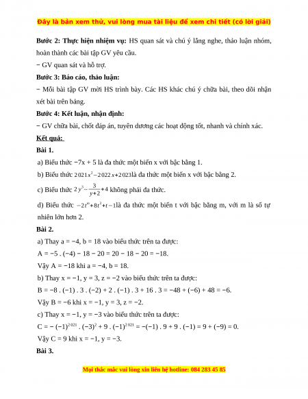 b) Biểu thức 2021x2−2022 x+2023là đa thức một biến x với bậc bằng 2. 3