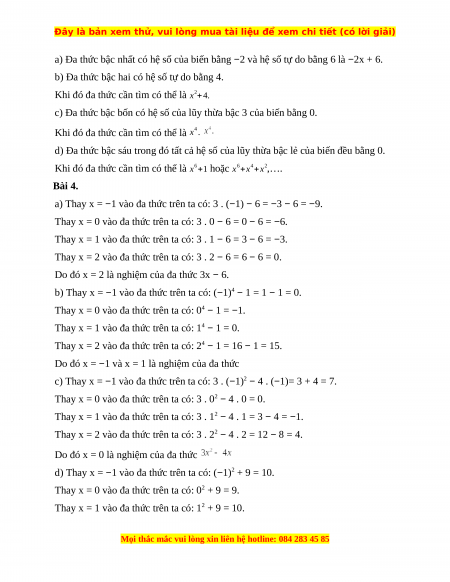 Khi đó đa thức cần tìm có thể là x6+1 hoặc x6+x4+x2,…. Bài 4.