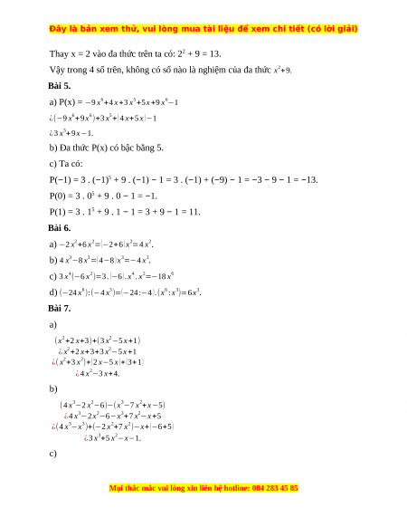 Thay x = 0 vào đa thức trên ta có: 02 + 9 = 9.