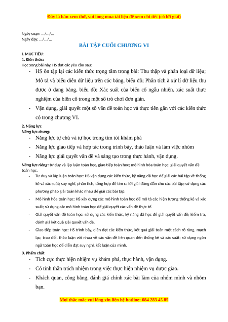 - Vận dụng, giải quyết một số vấn đề toán học và thực tiễn gắn với các kiến thức có trong chương VI. 2. Năng lực Năng lực chung: