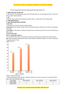 + Nhóm 2: Mô tả và biểu diễn dữ liệu trên các bảng, biểu đồ.