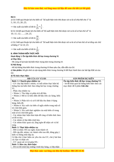 được ở dạng bảng, biểu đồ; Xác suất của biến cố ngẫu nhiên, xác suất thực