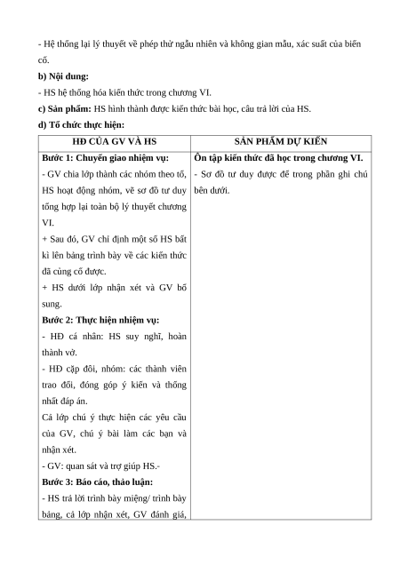 - Hệ thống lại lý thuyết về phép thử ngẫu nhiên và không gian mẫu, xác suất của biến cố. b) Nội dung: