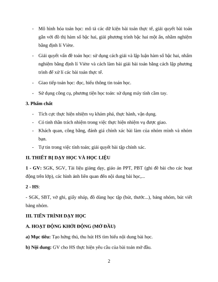 - Vận dụng được phương trình bậc hai vào giải quyết bài toán thực tiễn. 2. Năng lực