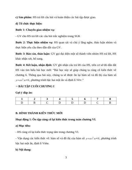 bậc hai một ẩn, định lí Viète. b) Nội dung: 3
