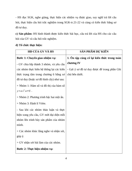 - GV chia lớp thành 3 nhóm, và yêu cầu chương IV