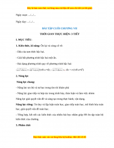 Giáo án Bài Tập Cuối Chương 7 Toán 10 Chân trời sáng tạo