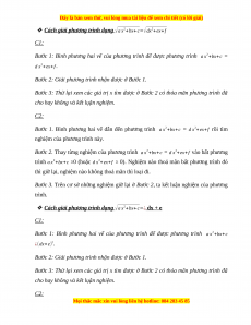 - Hai dạng phương trình quy về phương trình bậc hai: