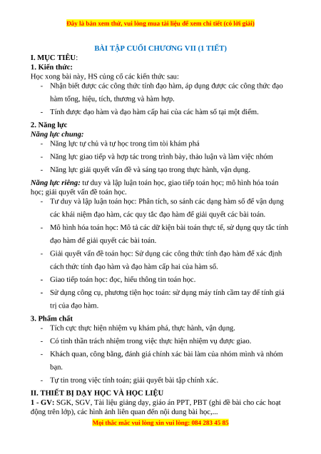 - Tính được đạo hàm và đạo hàm cấp hai của các hàm số tại một điểm. 2. Năng lực Năng lực chung: