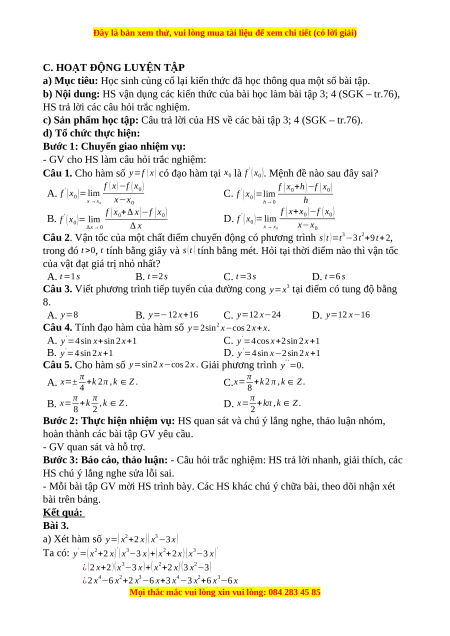 NV3: Củng cố định nghĩa đạo hàm cấp hai