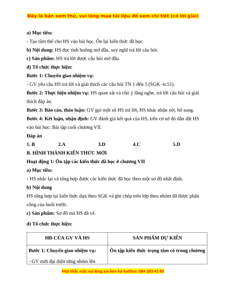 vào bài học: Bài tập cuối chương VII. Đáp án 1. B 2.A 3.D 4.C 5.D