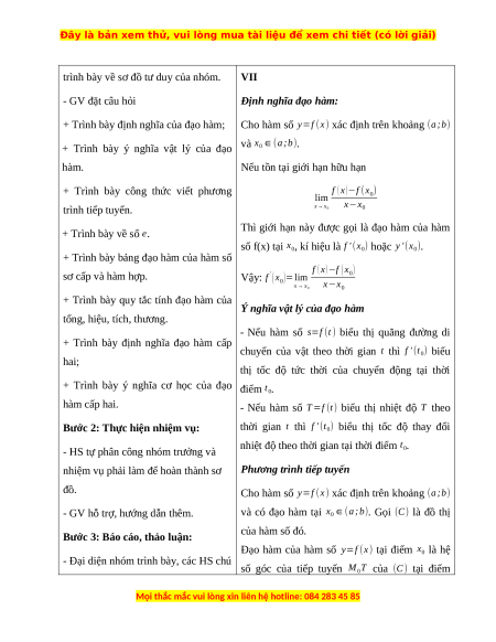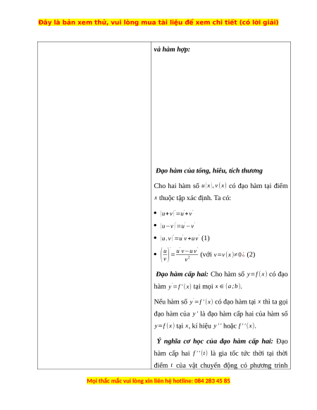 + Trình bày ý nghĩa vật lý của đạo và x0∈(a;b). hàm.