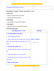 − Củng cố và vận dụng các dạng bài tập về cộng, trừ, nhân chia đa thức một biến. 2. Về năng lực: * Năng lực chung: