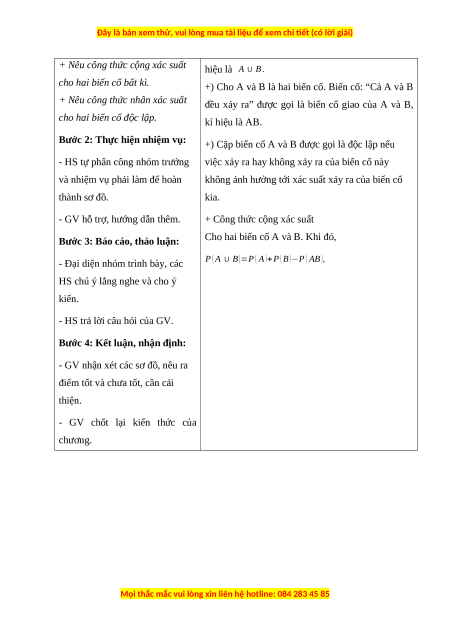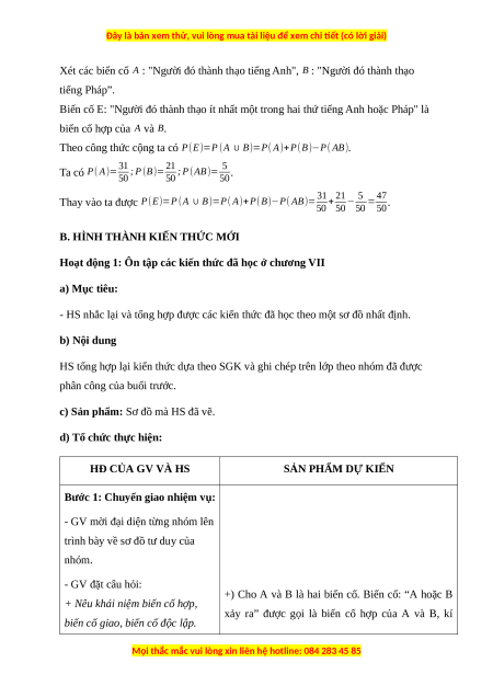 - Biến cố hợp, biến cố giao, biến cố độc lập.