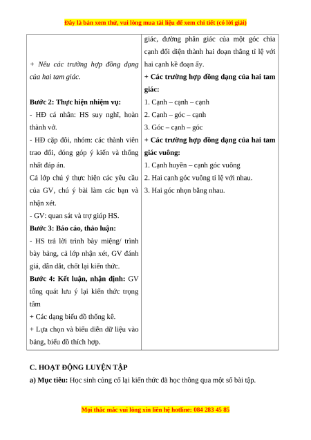 - Các trường hợp đồng dạng của tam giác. 2. Năng lực