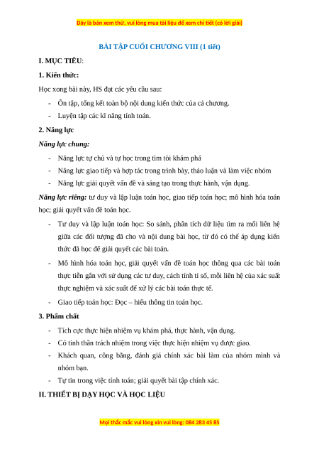 II. THIẾT BỊ DẠY HỌC VÀ HỌC LIỆU
