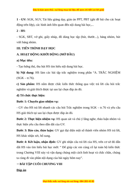 ⇒ BÀI TẬP CUỐI CHƯƠNG VIII Đáp án