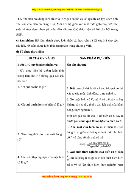 - HS tìm hiểu nội dung kiến thức về Kết quả có thể và kết quả thuận lợi; Cách tính
