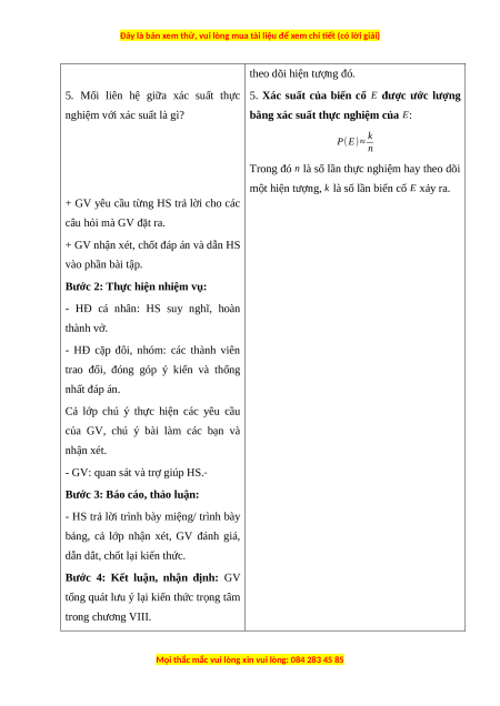 xác suất của biến cố bằng tỉ số; Mối liên hệ giữa xác suất thực gnhieemj với xác