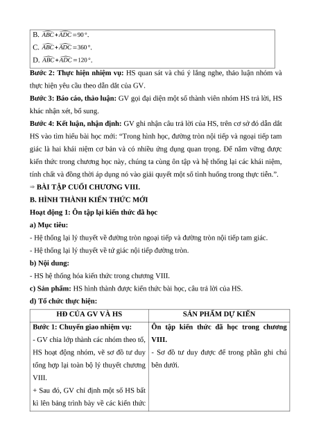 - Hệ thống lại lý thuyết về tứ giác nội tiếp đường tròn. b) Nội dung: