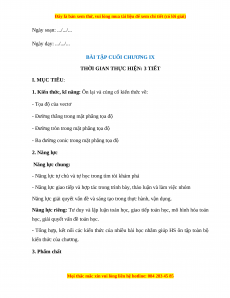 Giáo án Bài Tập Cuối Chương 9 Toán 10 Chân trời sáng tạo