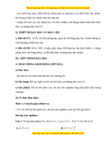 2. Đối với HS: SGK, SBT, vở ghi, giấy nháp, đồ dùng học tập (bút, thước...), bảng