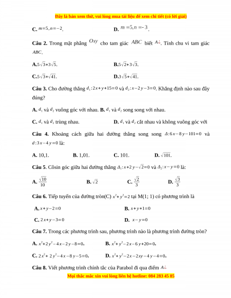 Đây là bản xem thử, vui lòng mua tài liệu để xem chi tiết (có lời giải)