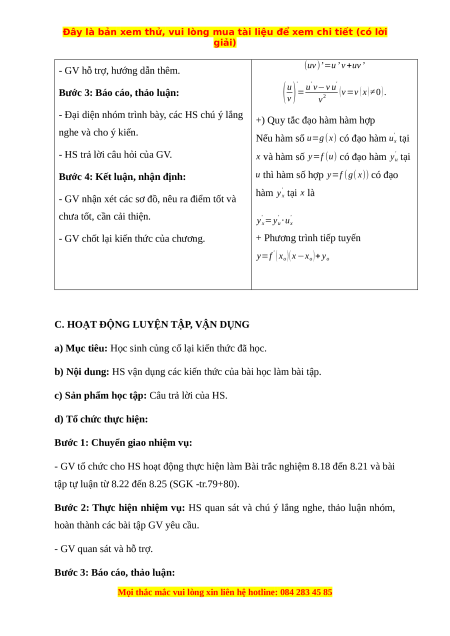 + Nhắc lại quy tắc đạo hàm của hàm số hợp.