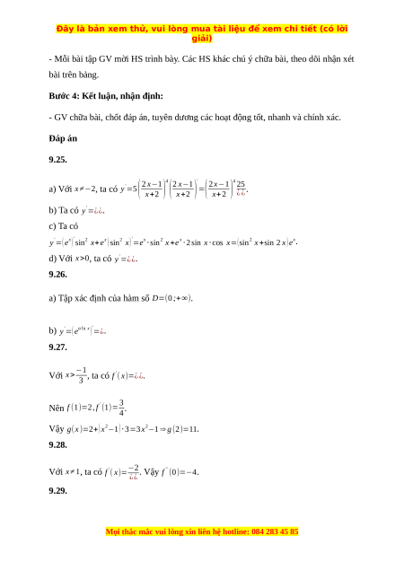 + Nhắc lại các quy tắc tính đạo hàm của các (xn)'=nxn−1; hàm số sau: