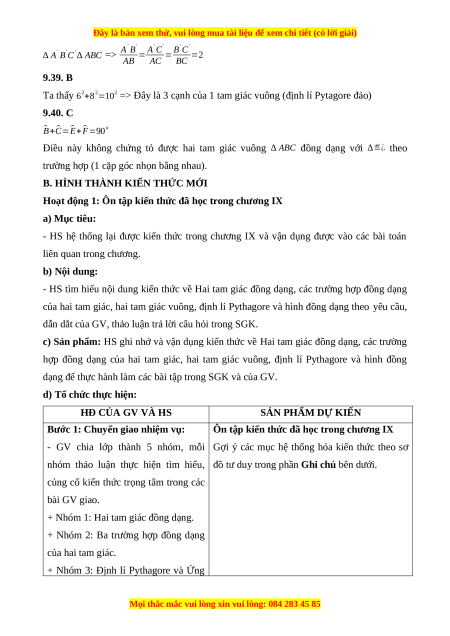 - HS hệ thống lại được kiến thức trong chương IX và vận dụng được vào các bài toán liên quan trong chương. b) Nội dung:
