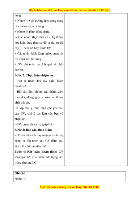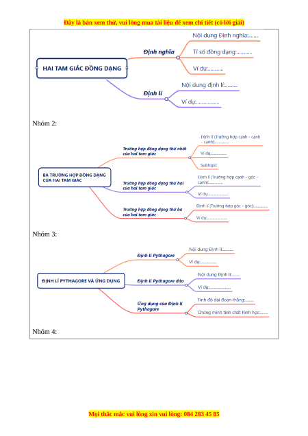 + Nhóm 2: Ba trường hợp đồng dạng của hai tam giác.