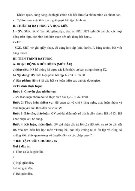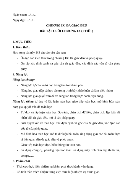 - Ôn tập xác định cạnh và góc của đa giác đều, xác định các yếu tố của phép quay. 2. Năng lực