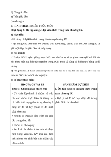 Hoạt động 1: Ôn tập củng cố lại kiến thức trong toán chương IX. a) Mục tiêu: