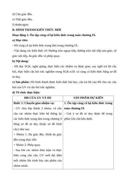giác nội tiếp, đa giác đều và phép quay. b) Nội dung: