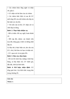 tổng quát lưu ý lại kiến thức trọng tâm trong chương IX. Ghi chú Nhóm 1: