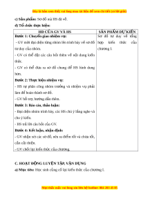 ớ HS: SGK, SBT, vở ghi, gi y ấ nháp, đồ dùng h c ọ t p ậ (bút, thư c...) ớ , b ng ả nhóm, bút vi t ế b ng ả nhóm, s đ ơ ki ồ n t ế h c ch ứ ư ng ơ làm theo nhóm. III. TI N Ế TRÌNH D Y Ạ H C Ọ A. HOẠT Đ N Ộ G KH I Ở Đ N Ộ G (M Đ Ở U Ầ ) a) M c t ụ iêu: - HS nh l ớ i ạ các ki n t ế h c đã h ứ c ọ c a ch ủ ư ng ơ I. b) N i