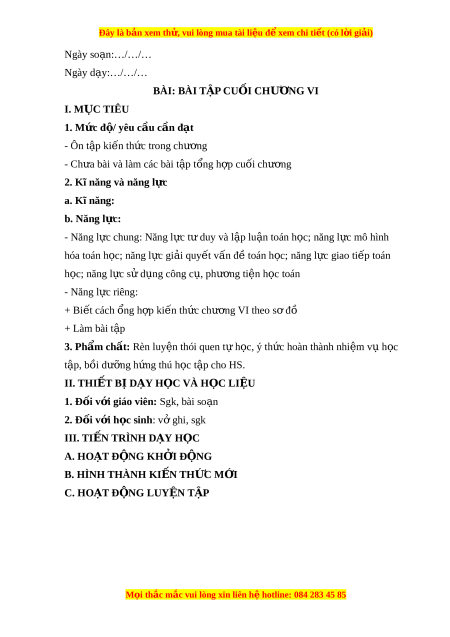 Đây là bản xem th , vu ử i lòng mua tài li u ệ đ xe ể m chi ti t ế (có l i ờ gi i ả ) Ngày so n: ạ …/…/… Ngày d y: ạ …/…/… BÀI: BÀI TẬP CU I Ố CHƯ N Ơ G VI I. M C Ụ TIÊU 1. Mức đ / ộ yêu c u c ầ n đ ầ t ạ - Ôn t p ậ ki n t ế h c t ứ rong chư ng ơ
