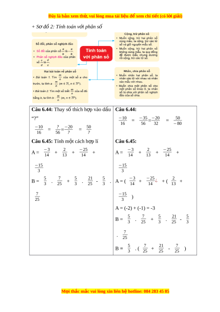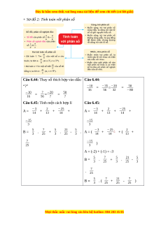 Câu 6.44: Thay số thích h p vào ợ d u ấ Câu 6.44: “?” −10 = −35 −20 = = 50 16 56 32 −80 −10 = ? −20 = = 50 16 56 ? ? Câu 6.45: Tính m t ộ cách h p ợ lí Câu 6.45: 2 2 A = −3 + + −25 + A = −3 + + −25 + 14 13 14 14 13 14 −15 −15 3 3 5 7 5 21 5 2 B = . + . - . A = ( −3 + −25 ¿ + ( + 3 25 3 25 3 14 14 13 7 −15 ) 25 3 A = (-2) + (-1) = -3 5 7 5 21 5 B = . + . - 3 25 3 25 3 7 . 25 5 7 21 7 B = . ( + - ) 3 25 25 25 M i ọ thắc m c