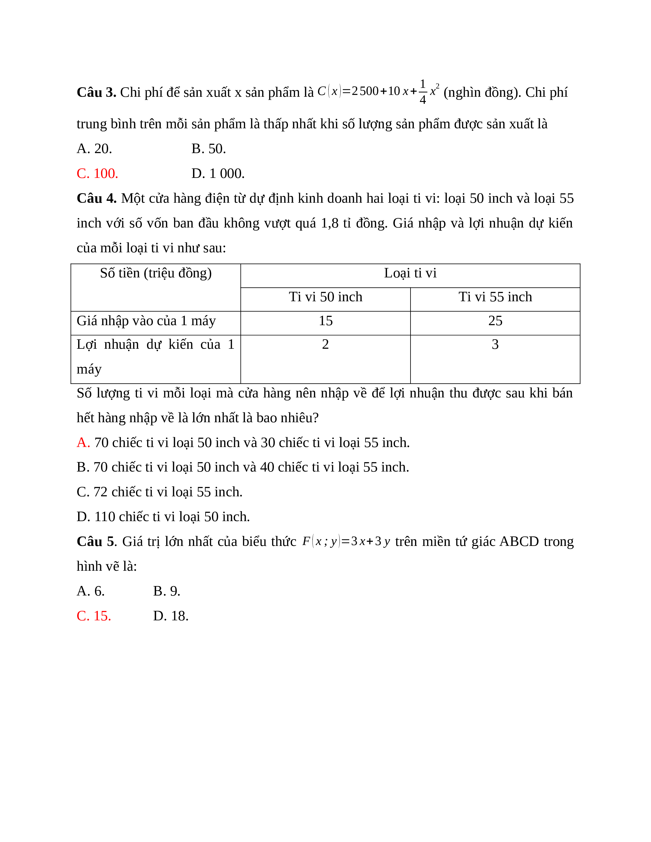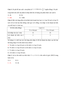 Câu 4. Một cửa hàng điện từ dự định kinh doanh hai loại ti vi: loại 50 inch và loại 55