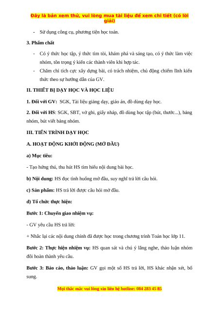 2. Đối với HS: SGK, SBT, vở ghi, giấy nháp, đồ dùng học tập (bút, thước...), bảng
