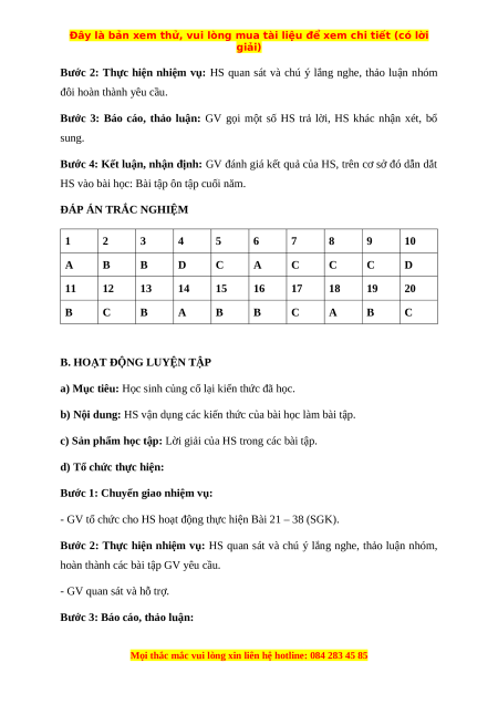 - GV tổ chức cho HS hoạt động thực hiện Bài 21 – 38 (SGK).