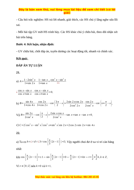 c) Sản phẩm học tập: Lời giải của HS trong các bài tập.