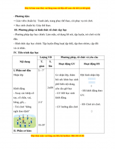 - Phương pháp dạy học chính: Làm mẫu, sử dụng lời nói, tập luyện, trò chơi và thi đấu.